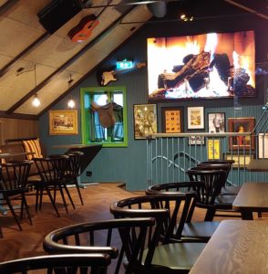 Middagspause på en time ca kl 1800. Mat kan bestilles til Irishman fra f eks Foodora osv
