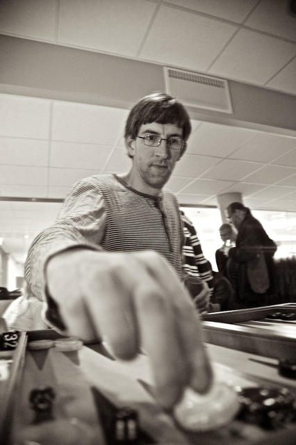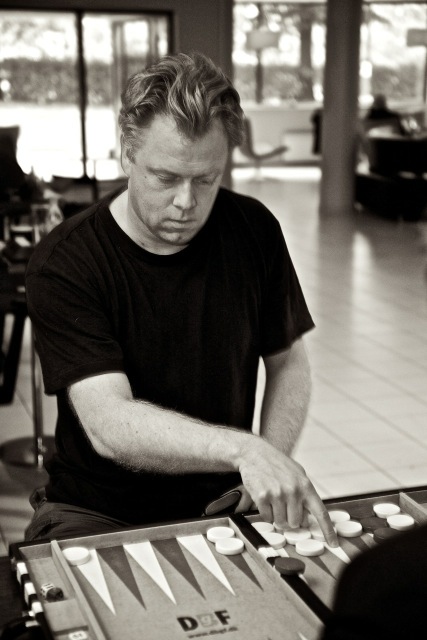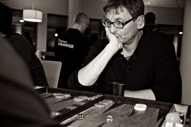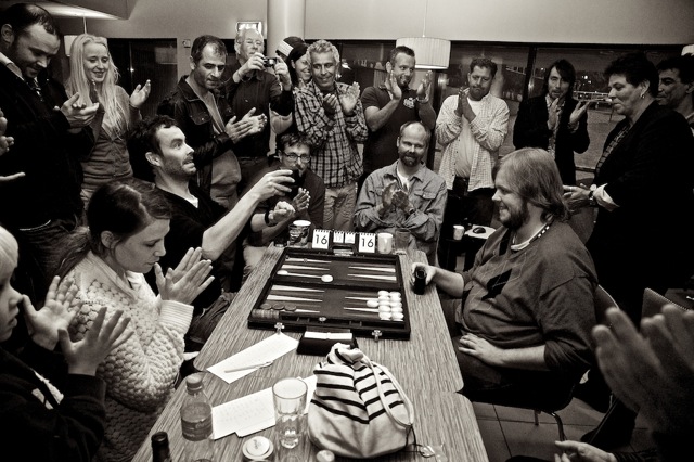 Ingen NM-deltagere kunne unngå å få øye på vår innleide fotograf Viktor Jæger under mesterskapet. Når han ikke selv spilte backgammonkamp, fartet han mellom bordene med sitt proffe fotoutstyr på jakt etter gode motiv. Og for det trente fotograføyet, innbyr et NM i backgammon til utallige blinkskudd. Noen få av bildene kan du se i denne artikkelen. Men Viktor tok langt flere bilder enn disse. Nederst på sida finner du en link til omlag 250 av hans NM-bilder! Bildene er i lavt oppløsning, men Viktor opplyser at dersom man kontakter ham, kan man kjøpe bildene i full format. Viktor tilbyr også utskrift av bilder samt bilder i ramme. Han kan kontaktes på epostadr: viktorjaeger@gmail.com eller telefon 928 19 128.