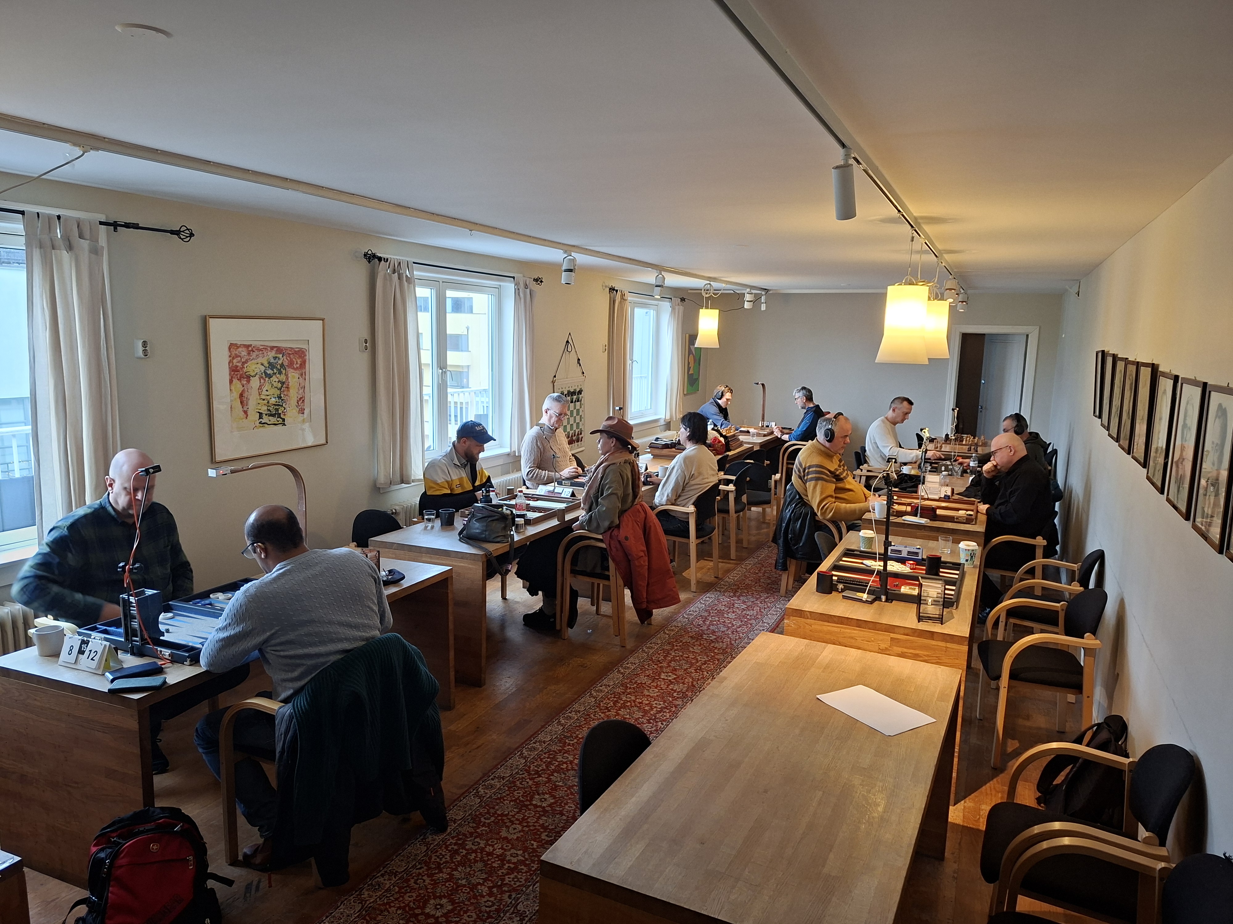 Også i år ble MM avholdt i Oslo Schakselskaps tradisjonsrike lokaler, der vi etterhvert begynner å bli godt kjent. I år var kun fem klubber representert - ti spillere fra Oslo, to fra Stavanger og Bergen, og én fra hver av Horten/Tønsberg og Trondheim.