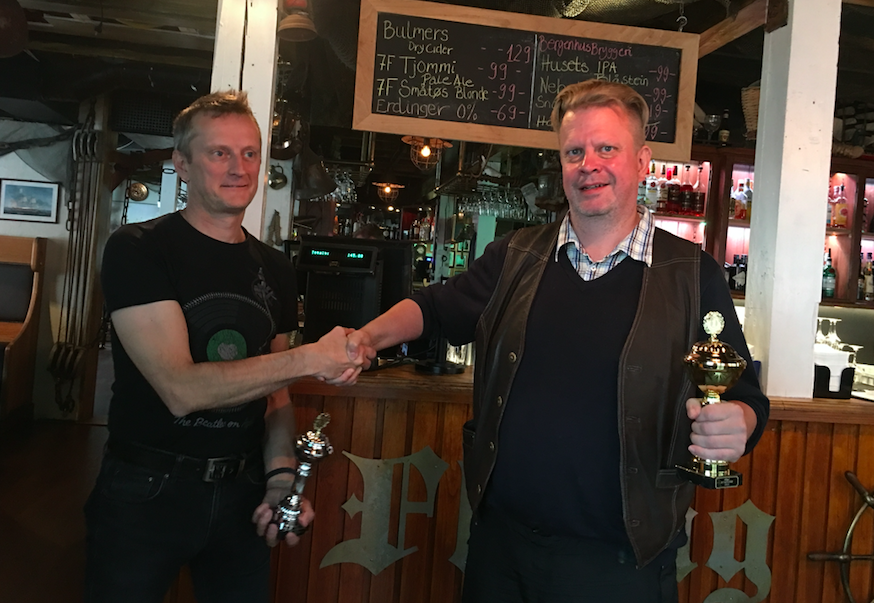 Thorleif slo ut Jørn, Rune F slo ut Elias og Hannu slo ut Rune F . Vi gratulerer!