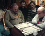 8 spillere var med p� sesongavslutning og sommerfest hos Astrit. Vi spilte Double elimination og Nils gikk ubeseira gjennom turneringa, blant annet etter � ha sl�tt �yvind to ganger. Han tok dermed sine f�rste mesterpoeng for sesongen. Den st�rste spenninga knytta seg imidlertid til hvem som skulle bli sesongmester. B�de Arne Ludvig og J�rn var tydelig preget av stundens alvor og tok spillinga sv�rt alvorlig. Selv om begge tapte begge sine to kamper, klarte Arne Ludvig � holde seg ett poeng foran Torkild i sammendraget. Nils klarte selv med fire seiere p� rad ikke � ta igjen Arne Ludvig, som dermed ble utropt til sesongmester v�ren 2009, med knappest mulig margin. Gratulerer!