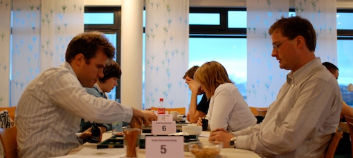 Asbjørn Arntzen er mestvinnende gjennom historien til Bodø Bymesterskap. Turneringa er alltid godt besøkt både av våre egne spillere og andre spillere fra hele Norge. På bildet spiller Svein mot Tommy, og Kristian mot Iselin.