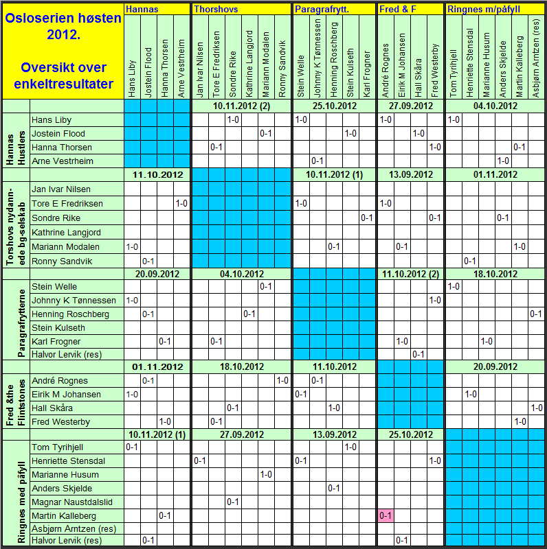 Sluttabellen for Osloserien høsten 2012 finner du her.