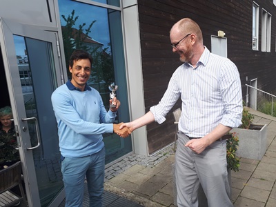 Stavanger Bymester 2018 Elias Kritikos, og finalist Rune Halvorsen. fikk hver sin flotte pokal med klubblogo: