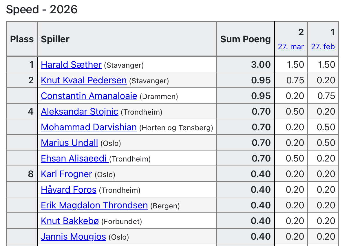 Hele Speed tabellen finner du på nbgf.no
