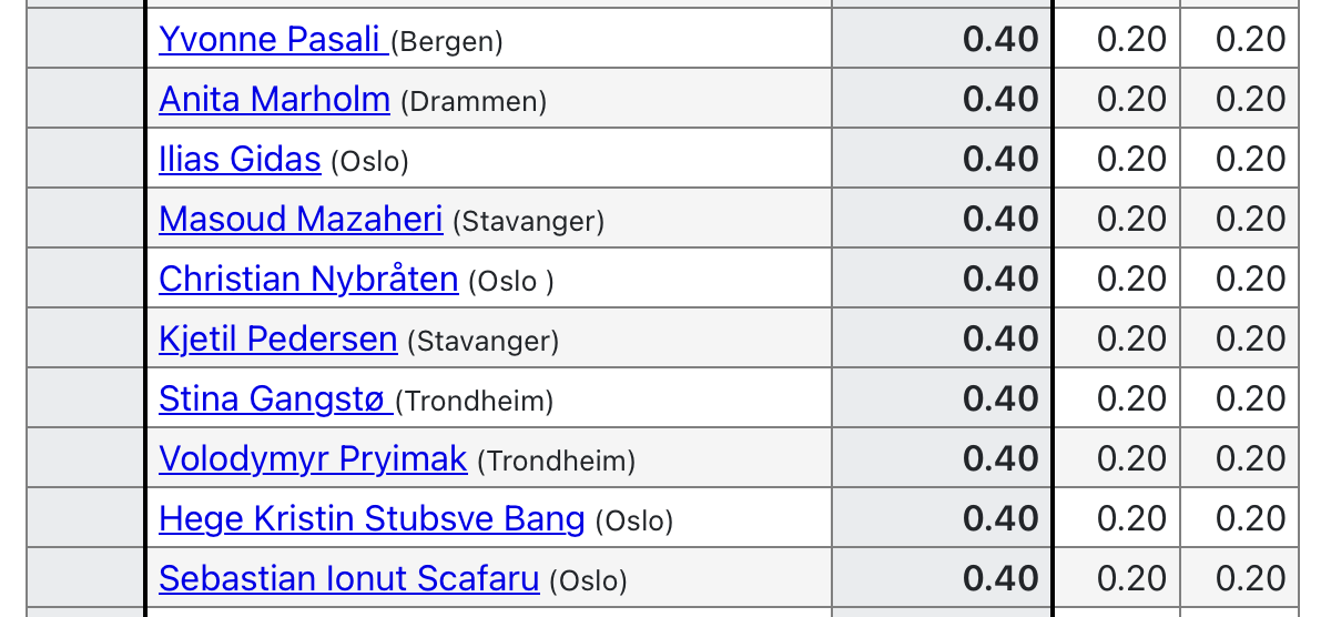 Topp 12 etter hver runde: