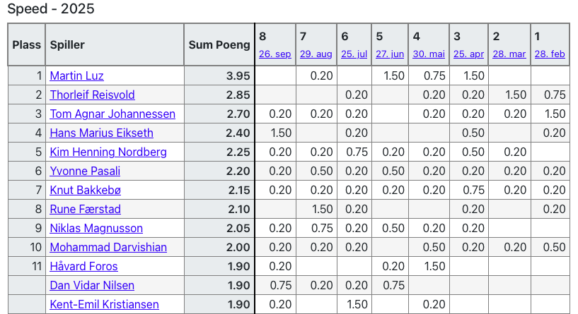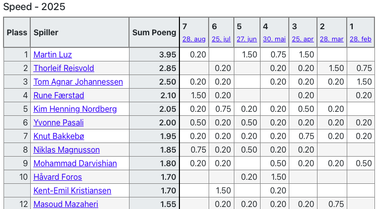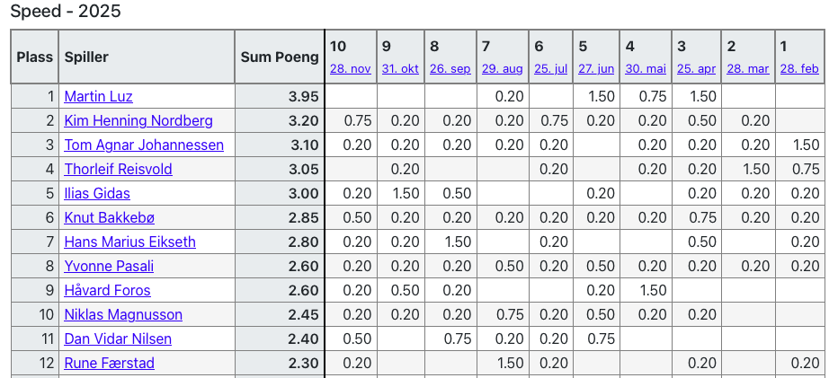 Det var en thriller fredag 28. for mange som var marginale på å komme med i Topp 12. Hvem blir "Speedy 2025" og stikker av med potten?
