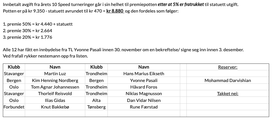 Husk kr 50 skal vippses (søk) nbgf - (kategori) "Speed - Online" - (tekst) "Speed 1"