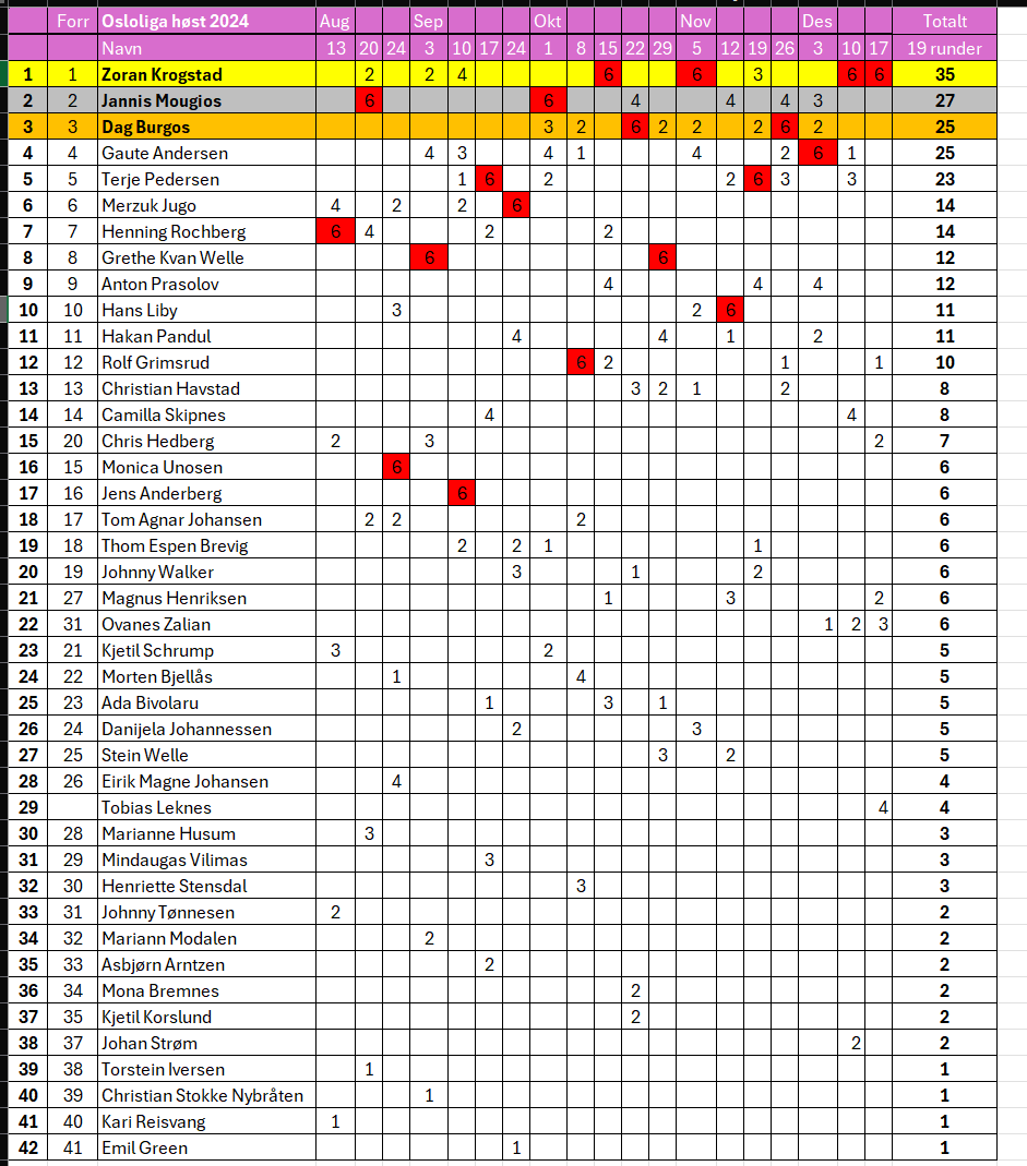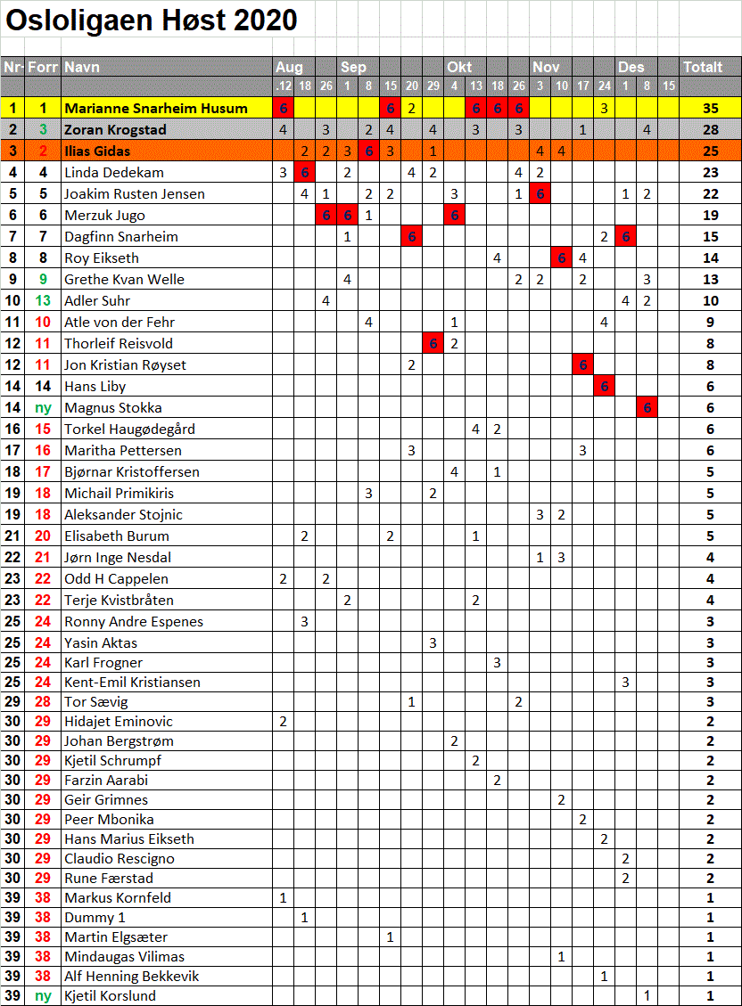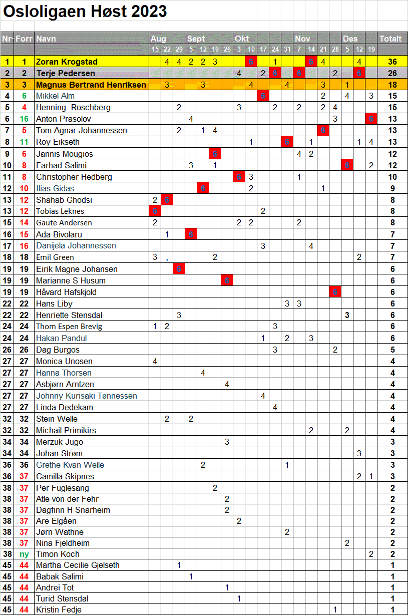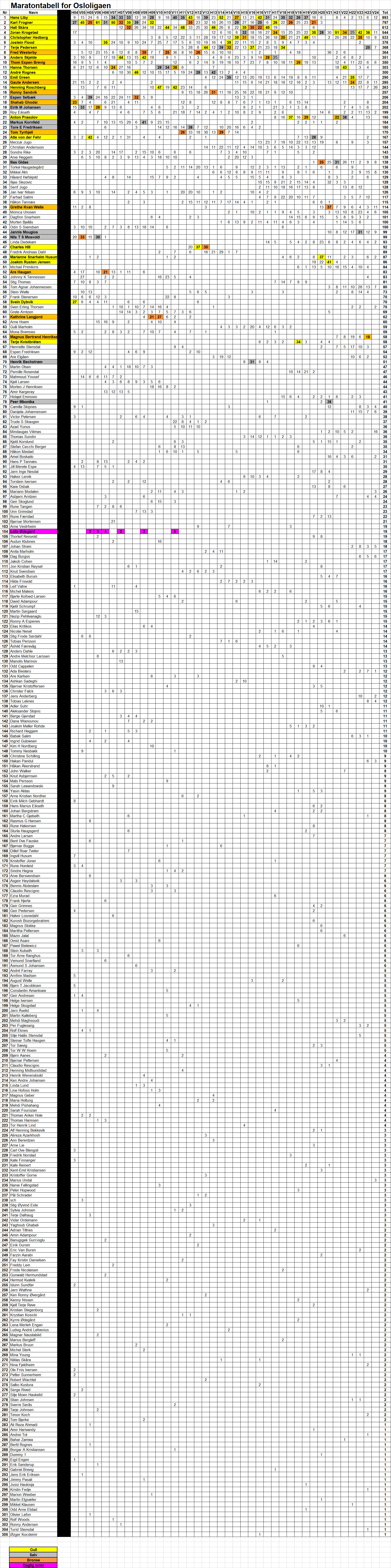 Maratontabell er oppdatert 27 september 2023.