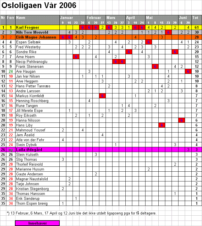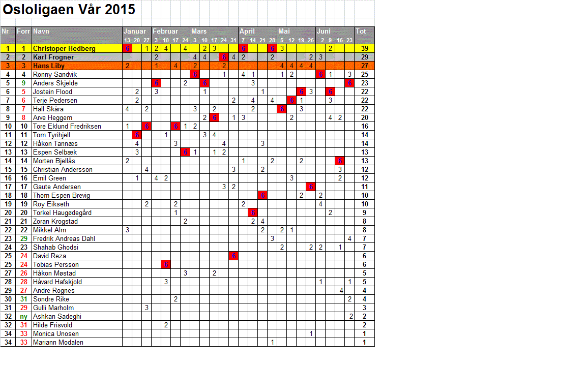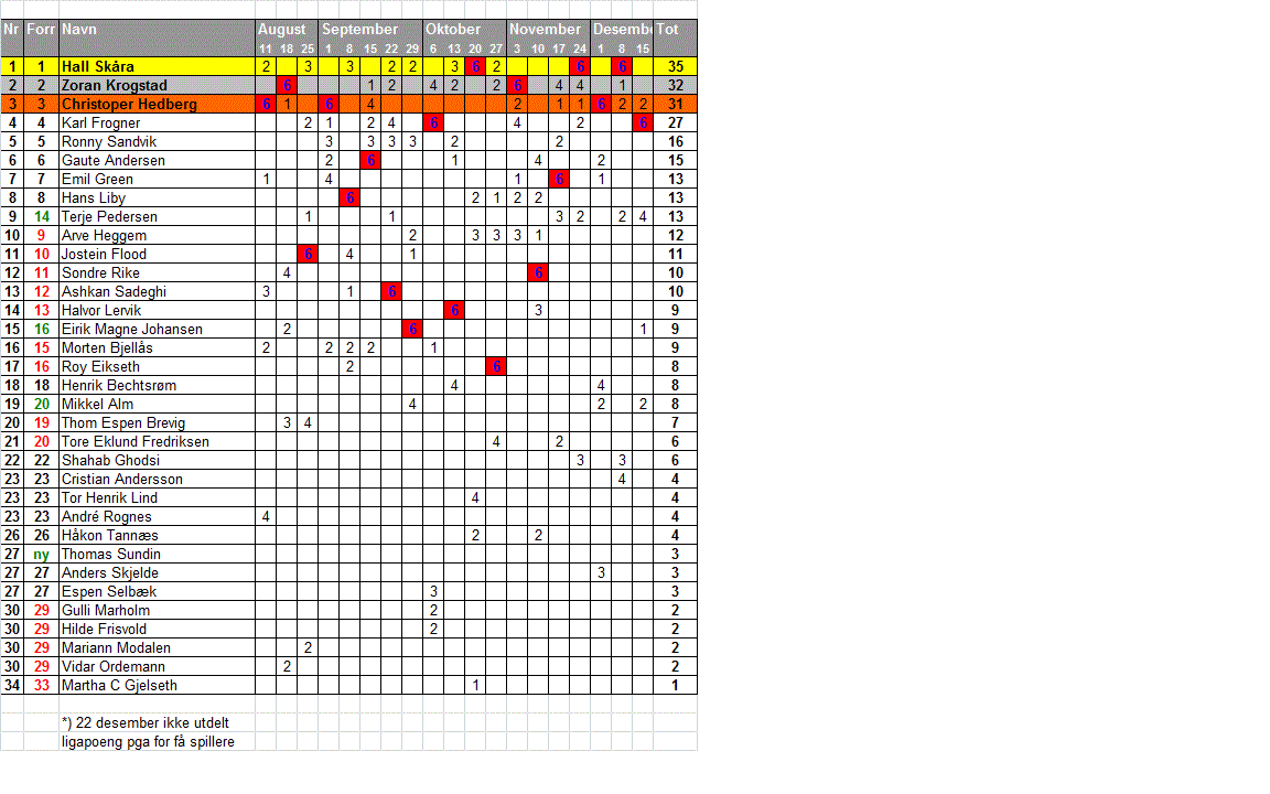 - Å belønne deltagelse. Her er det ingen begrensninger ifht hvor mange turneringer man ønsker å møte opp på for å ta poeng. Det er heller ikke forskjell i hvor mange poeng man får etter styrke og nivå på de øvrige som deltar. Her ligger ligapoengene og venter - det er bare å møte opp!