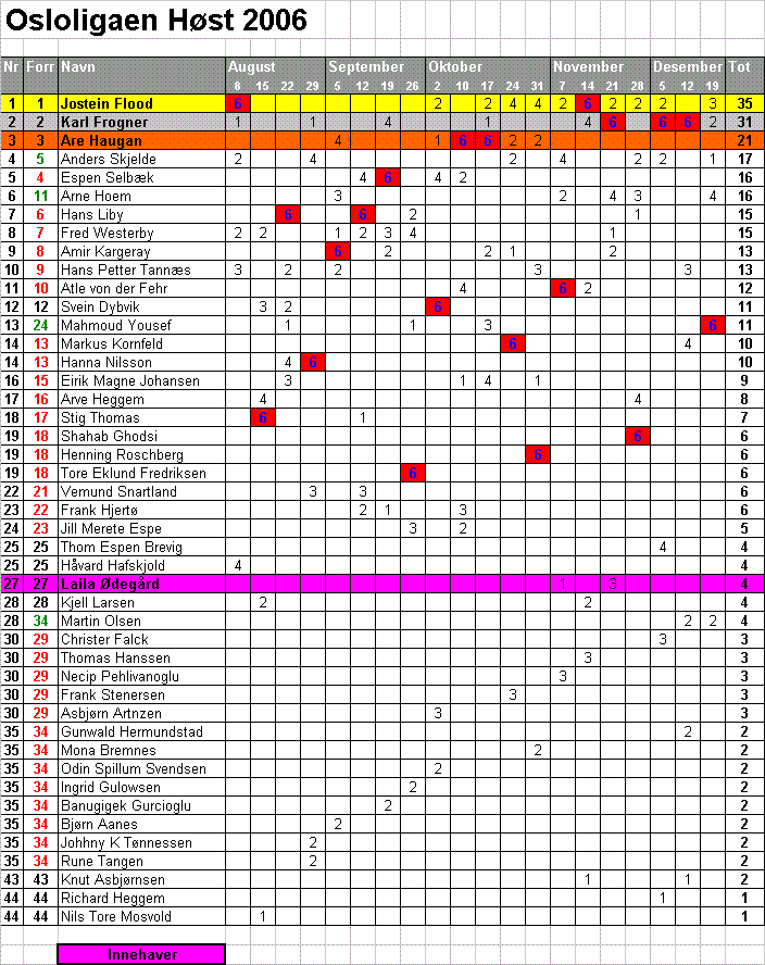 Den som vinner ligaen tre ganger får brettet til odel og eie.