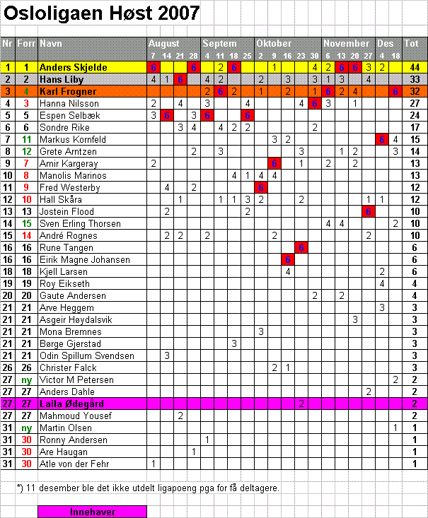 Osloliga Poengsystem