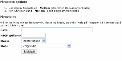 ETTER at du har gjort dette går du til påmeldingsskjemaet og fyller ut alle dataene. Trykk så på "Meld på" og du skal komme opp på listen over forhåndspåmeldte.