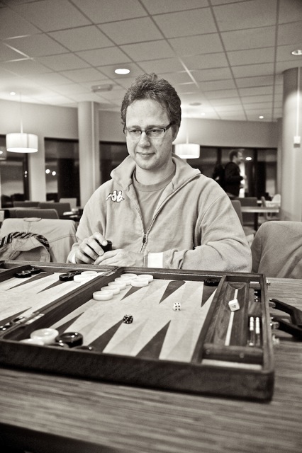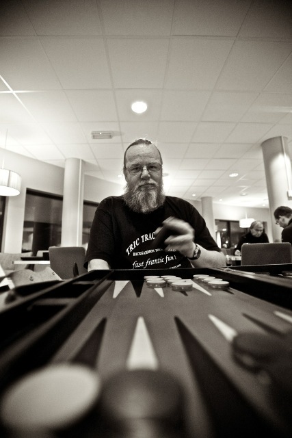 Ingen NM-deltagere kunne unngå å få øye på vår innleide fotograf Viktor Jæger under mesterskapet. Når han ikke selv spilte backgammonkamp, fartet han mellom bordene med sitt proffe fotoutstyr på jakt etter gode motiv. Og for det trente fotograføyet, innbyr et NM i backgammon til utallige blinkskudd. Noen få av bildene kan du se i denne artikkelen. Men Viktor tok langt flere bilder enn disse. Nederst på sida finner du en link til omlag 250 av hans NM-bilder! Bildene er i lavt oppløsning, men Viktor opplyser at dersom man kontakter ham, kan man kjøpe bildene i full format. Viktor tilbyr også utskrift av bilder samt bilder i ramme. Han kan kontaktes på epostadr: viktorjaeger@gmail.com eller telefon 928 19 128.