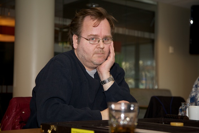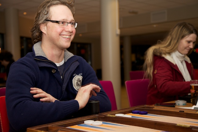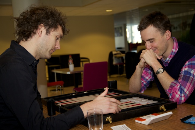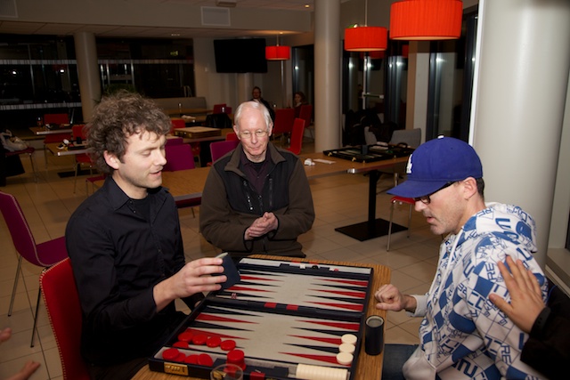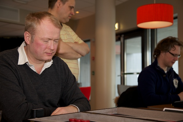 Tom Tyrihjell. Bak står Karl og betrakter brettet til Tore.