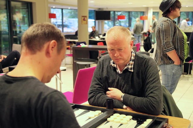 Norgesmesterskapet er nå godt igang. 56 spillere kjemper om norgesmestertittelen, mens 14 spillere kjemper om å vinne mellomklassen. Det var tilløp til panikk i arrangementskomiteen før turneringsstart dag to... Det viste seg at én av kampene fra runde to ble registrert med feil vinner. Man lagret resultatet fra runden før dette ble oppdaget. Programmet avslørte da en av sine svakheter ved at man ikke kan rette på et resultat etter lagringstidspunktet før neste trekning skal foretas. Dermed var gode råd dyre: Man kunne ikke trekke ny runde etter en feilregistrering, og man kunne heller ikke rette opp resultatet. Etter energisk Facebook-utveksling med utvikleren på morgenkvisten, ble man enige om en alternativ løsning: Ny turnering ble startet, men spillerne som hadde tapt kamper ble registrert med antall tap (1 eller 2) ved turneringsstart. Derfor eksisterer det nå to linker til turneringsoversikten. Den første er