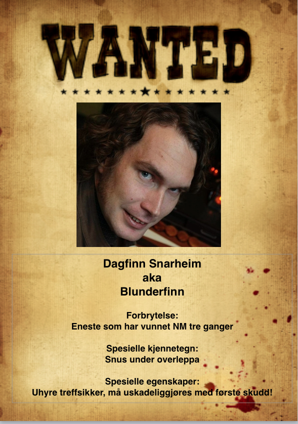 Det er allment kjent i det norske backgammonmiljøet at det finnes mange banditter blant oss. Derfor var det satt opp skuddpremie på de verste av dem under NM. Det var mange ivrige dusørjegere, og bandittene ble hentet inn av lovens lange arm nesten alle sammen. Det var kun én som slapp unna: norgesmester Tore Eklund Fredriksen... Dusørjegerne jaktet på bandittene med løfte om en mulig milliongevinst. De fikk nemlig to flaxlodd for hver banditt som ble stoppet. Bandittene gikk ned for telling når dusørjegeren slo vedkommende ut av turneringen. Og skulle én av bandittene ta seg hele veien til finalen uten å bli stoppet, ville vedkommende selv motta dusøren om ikke finalisten klarte å stoppe vedkommende. Dette skjedde, som kjent, for norgesmesteren som i tillegg til pokal, håndlaget brett samt heder og ære, gikk hjem med to flaxlodd i lomma.