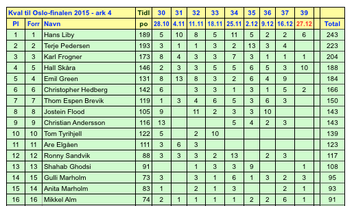 Vi gratulerer Hans med seieren i Oslofinalen og håper på god deltagelse i OBgKs turneringer i 2015. Sjekk stillingen i kvalifiseringen pr idag til neste års finale her: