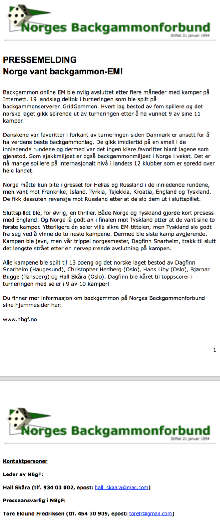 Norge ble til slutt europamestre etter å ha vunnet EBIFs online-EM. I den forbindelse har sentralstyret laget en pressemelding som vil bli sendt til flere aviser.