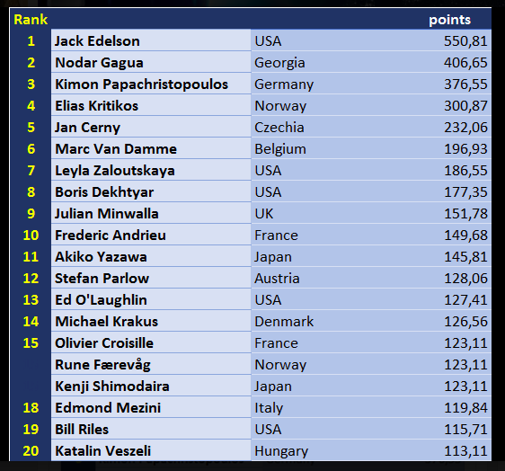 Etter Gibraltar ble World Ranking listen oppdatert: