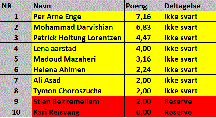 Alle 16 har allerede akseptert til turneringsleder Marianne S. Husum. Ved frafall rykker nestemann opp fra listen.