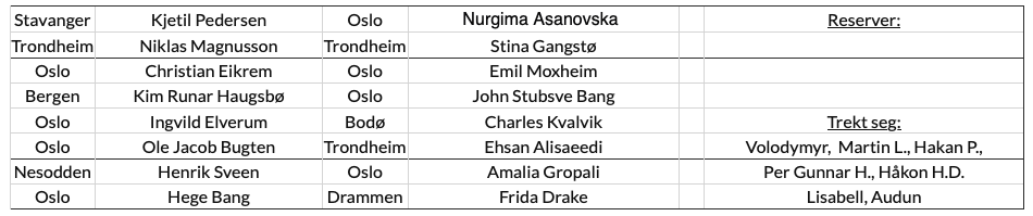 §6.3: Turneringsleder har ansvaret for å invitere de 8 innen 3. januar og be om bekreftelse innen 10. januar. Hvis noen melder forfall eller ikke gir beskjed går plassen automatisk til nestemann på listen. I tillegg kommer de resterende 8 fra HUB og bonusmatchtabellen.