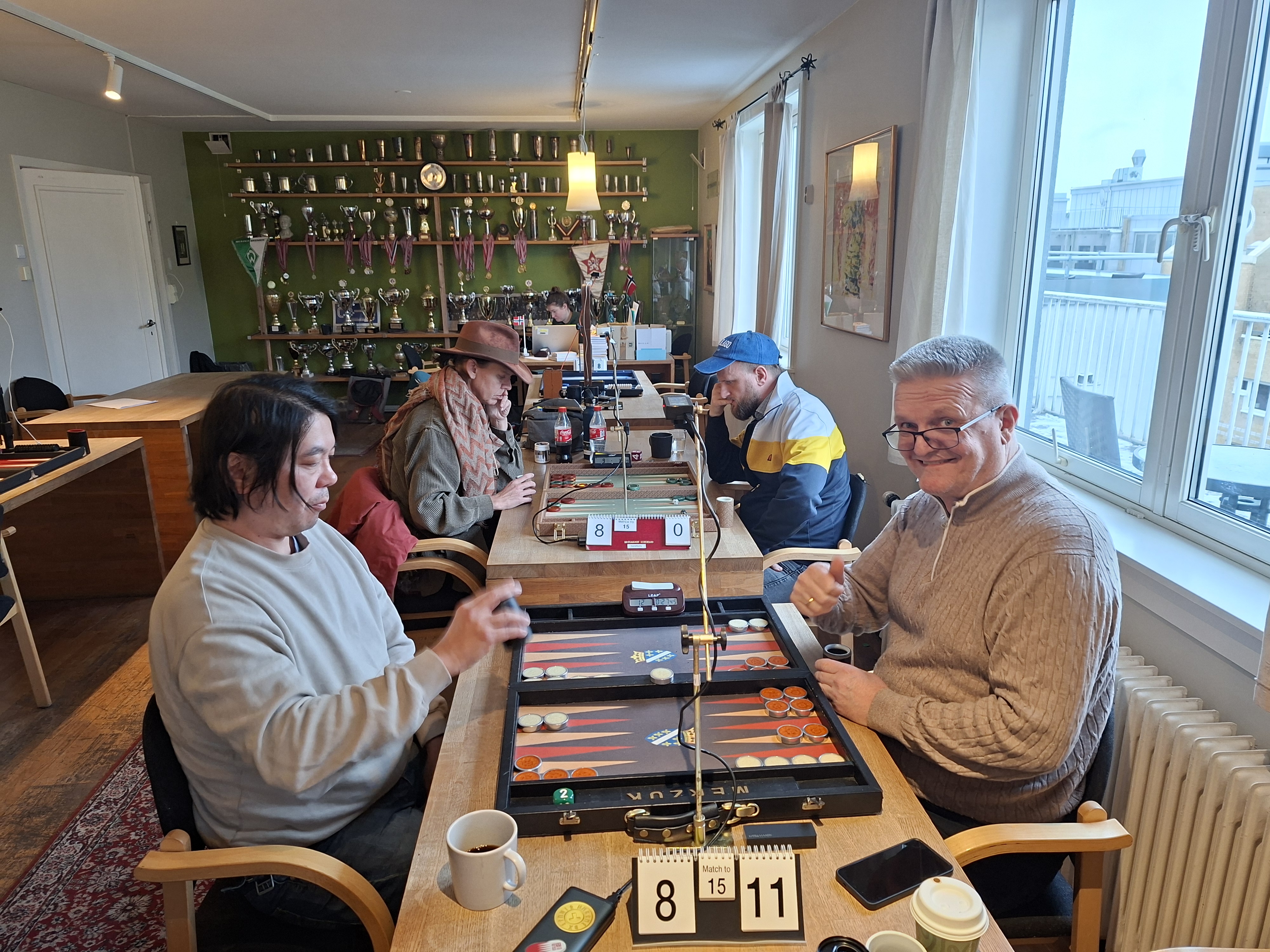 Det var ingen enkel motstand i de første rundene: Farzin Aarabi, Hans Liby og Terje Pedersen måtte kaste inn kortene én etter én. Til slutt var det Dagfinn Snarheim som ventet i sin sjette finale, hvorav to tidligere seire. Finalen så lenge ut til å gå Dagfinns vei etter en 4-dobla gammon på stillinga 5-5 til 15, men som vi har lært så kan alt skje - og det gjorde det. En dobla gammon på 11-13 var faktisk alt som skulle til!